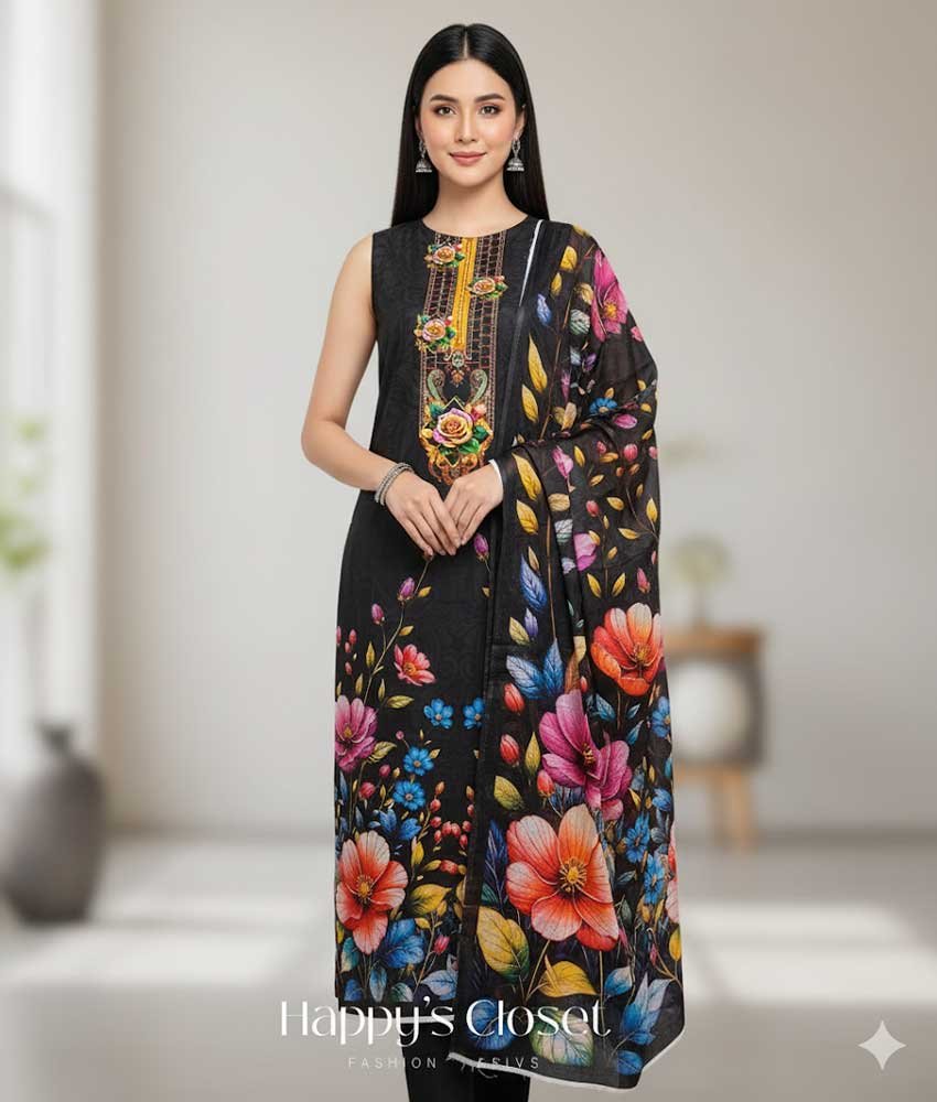 Elevate your style with our premium Jom Jom Three Piece Set – Jama, Orna, and Pant crafted from 100% soft and breathable cotton fabric (Suti). Designed for both comfort and elegance, this three-piece outfit is perfect for daily wear as well as festive occasions.