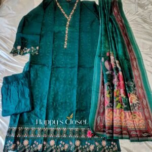 Includes kameez, salwar/pant, and matching orna/dupatta